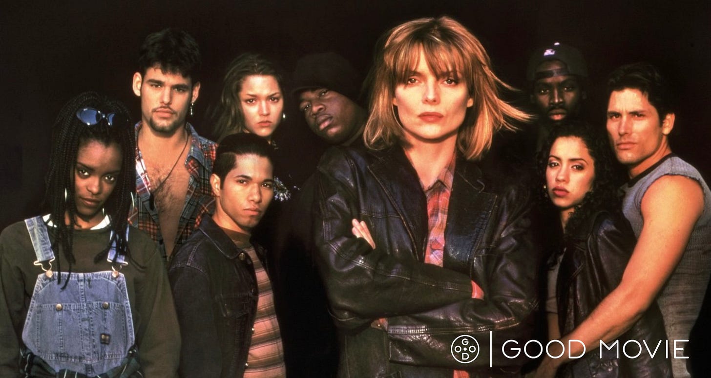 I greatly enjoy Dangerous Minds. It’s as meaningful to me now as it was when I was a teacher (I taught at a middle school in Houston from 2006 to 2015), and as it was when I was a kid (I was 14 the year it came out, and that’s a pivotal point in every person’s pop-culture life).