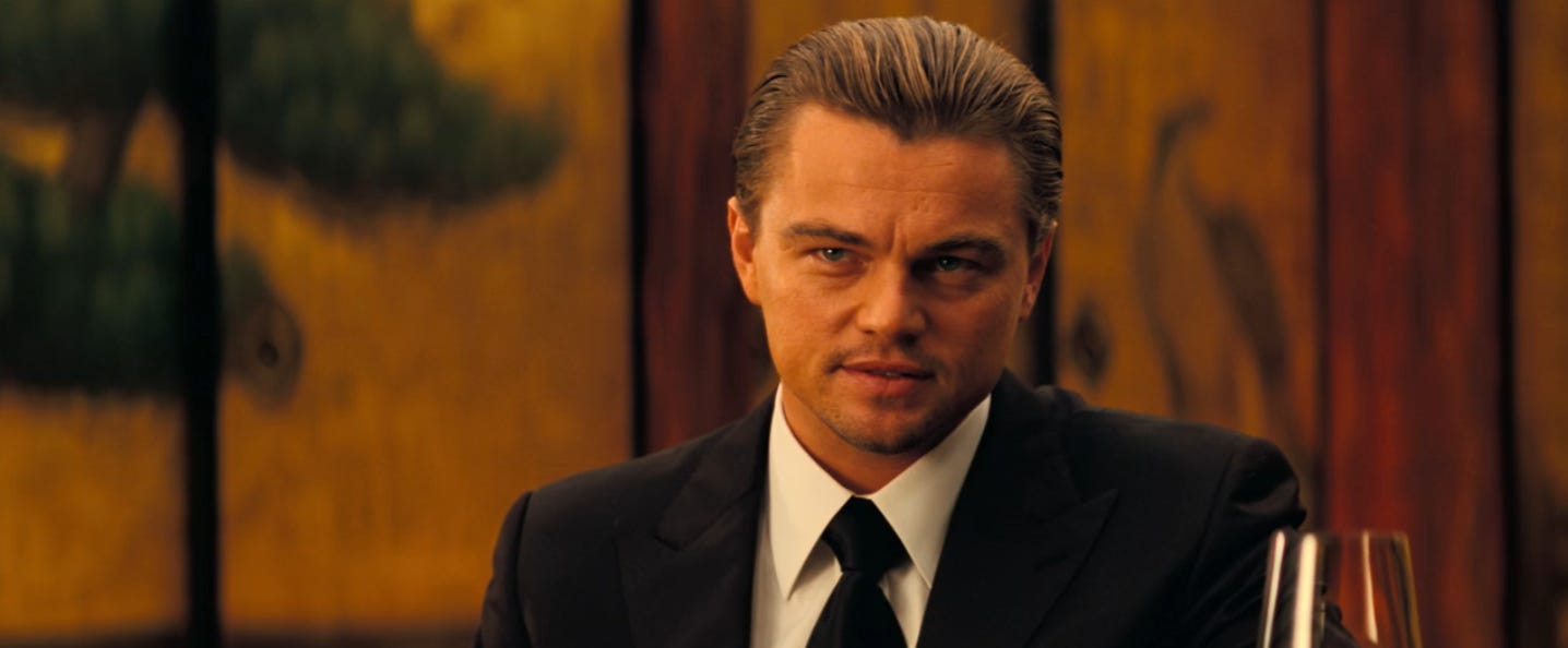 3:02: (That’s actually not true.) (It’s just funny to me to think about a guy who looks as cool as Leonardo DiCaprio does in this suit having a name as dumb as Dominazzo Cobbington.) (That being said, there IS a lot of secret name symbolism stuff in Inception: “Dom,” for example, is the Polish word for “home,” which is where Dom Cobb spends the entire movie trying to return to. And the name “Cobb” sounds very close to “khwaab,” which translates to “dream” in several South Asian and Middle Eastern languages. I’ll point out some more things like that as we make our way through this.)