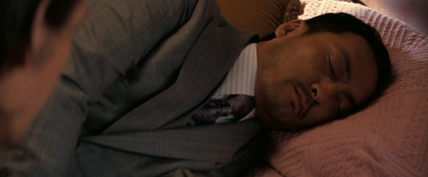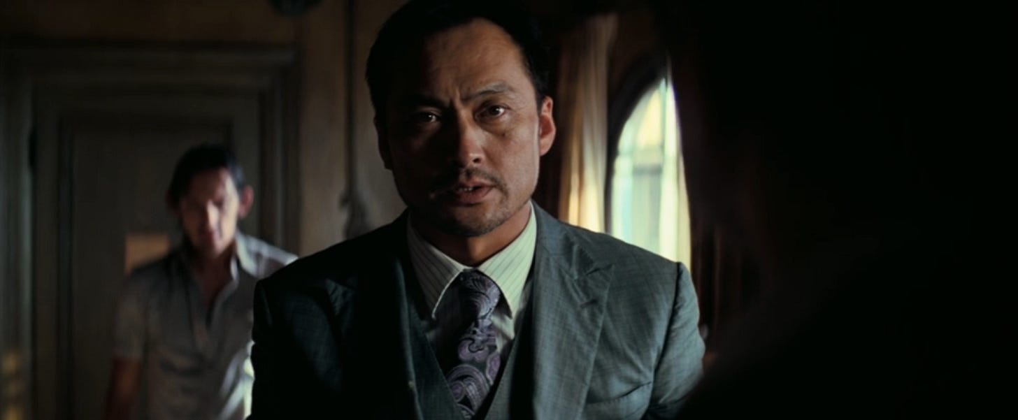 4:38: P.S. The man asleep on the bed is Ken Watanabe. He plays Saito, the aforementioned businessman auditioning Dom and Arthur. Watanabe is such a fun actor. He has a distinguished air about him that makes everything he says and does feel important. I would love to hear him do something ridiculous, like order Taco Bell or call someone a “weak ass bitch.”