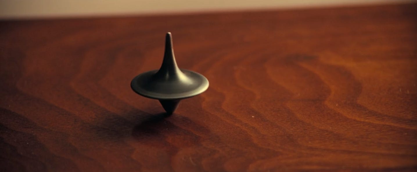 16:12: All of the members of Cobb’s dream heist team carry a totem, which is an item unique to each person that helps prevent them from mistaking a dream world for the real world. This top here is Cobb’s. (If he spins it and it never falls over, that’s how he knows he’s in a dream.) And that leads me to my favorite Inception fan theory, which is: