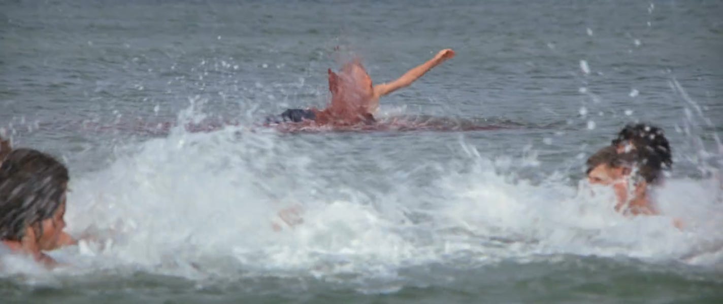 2:38: This is Chrissie. She’s currently attending a beach party with a bunch of other people. She’s about to swim in the ocean nude as a way of flirting with a guy who has taken an interest in her. Unfortunately for Chrissie, what she does not know is that she’ll be bitten in half not too long after making her way into the water.
