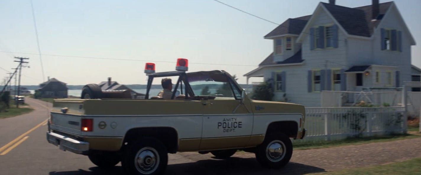 7:09: One of the more interesting character traits of Chief Brody, who moved to Amity from New York City, is that he has a profound fear of the water. And that phobia might seem like it’d be something that would preclude a person from accepting a job as the chief of police for a town that’s a literal island. But it doesn’t stop Brody here, which I have to assume is owed entirely to the fact that the police cars in Amity are so fucking cool. Look at this thing: