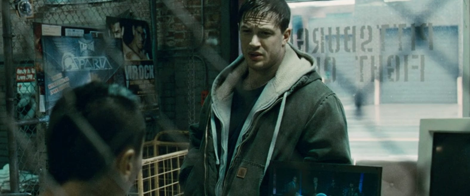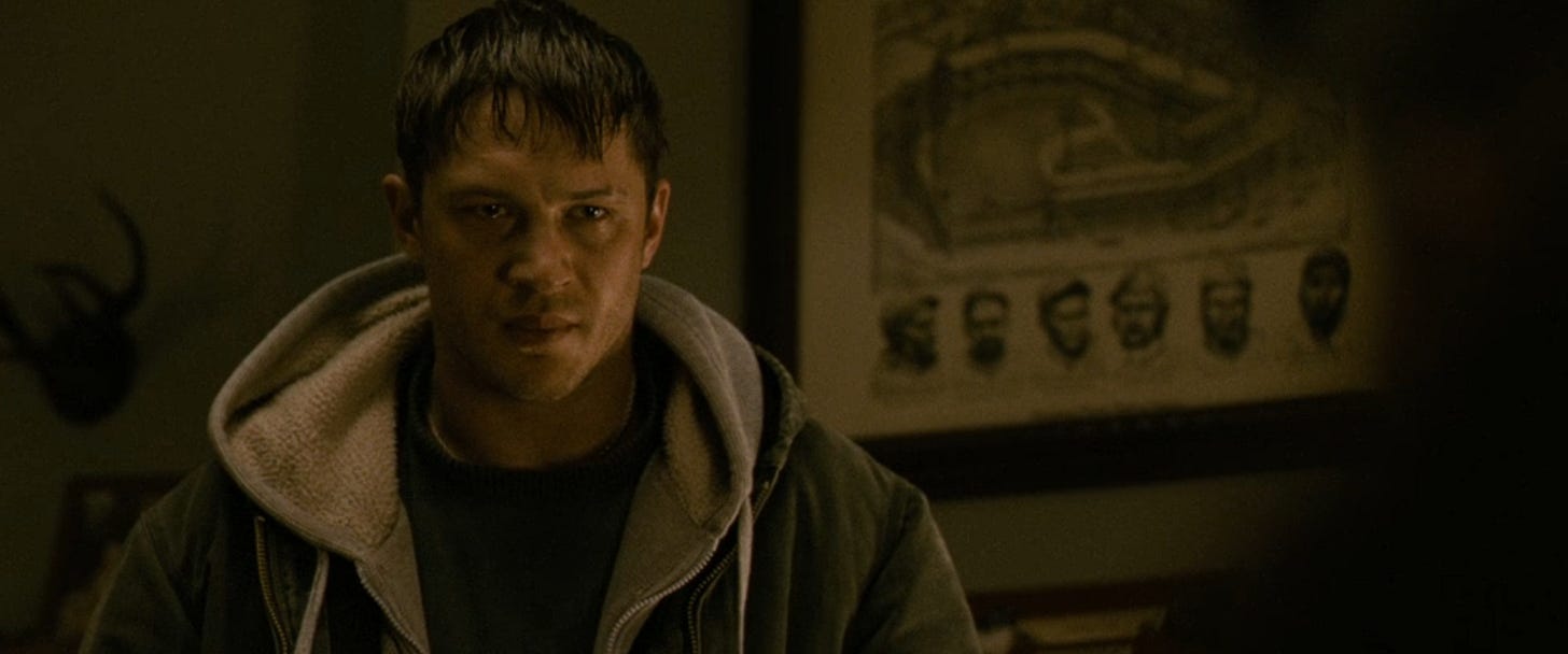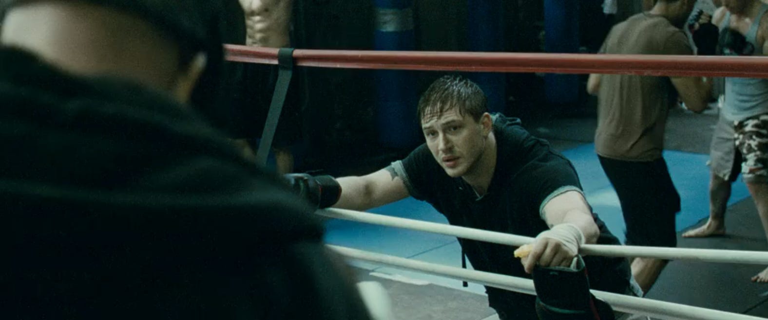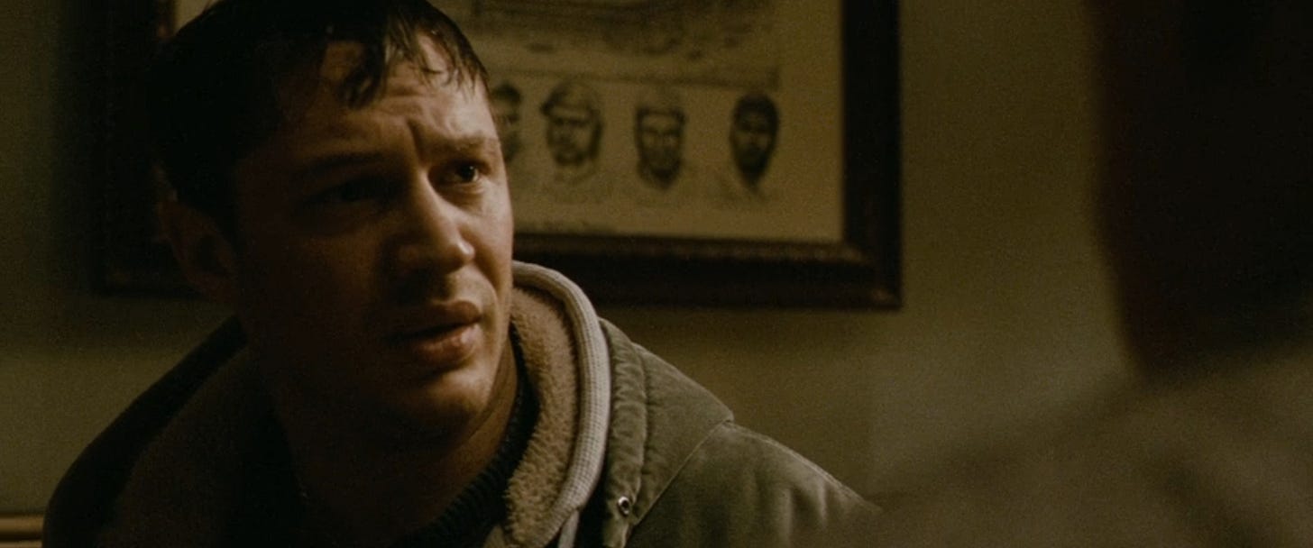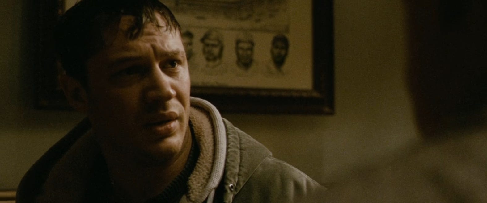 8:01: In addition to being a drunk, Paddy also physically abused his wife and sons. When their mom escaped Paddy, Tommy (who was just a child at the time) went with her. They drove as far west as they could to get away from Paddy, eventually landing in Tacoma, Washington. When Tommy’s mom fell terminally ill, he cared for her until she died. After that, Tommy joined the Marines. He and Paddy haven’t seen each other for 14 years. Tommy hates his father, and also he hates God, too. And the benefit of casting Tom Hardy in your movie is can say with just one single look what it took me 100+ words to write.